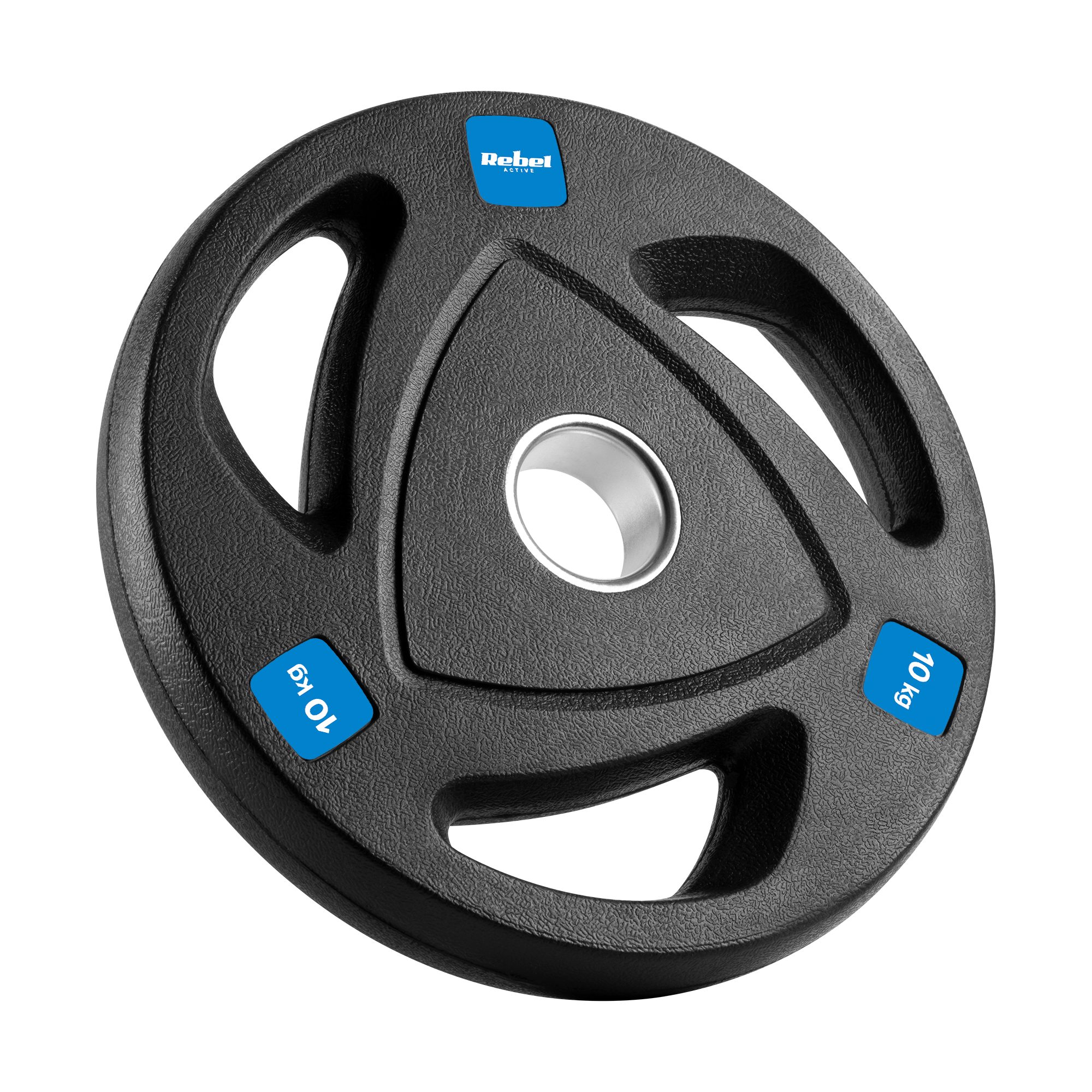 Zestaw Rebel Active pozwala trenować wznosy i przysiady przy pomocy samych ciężarków. Możesz też założyć obciążenia na gryf. Talerze mają większe otwory niż tradycyjne obciążenia, co pozwala na używanie ich z większością sztang olimpijskich. Otwór talerzy w zestawie RBA-2110 dopasowany jest do standardu gryfów olimpijskich i wynosi 51 mm.