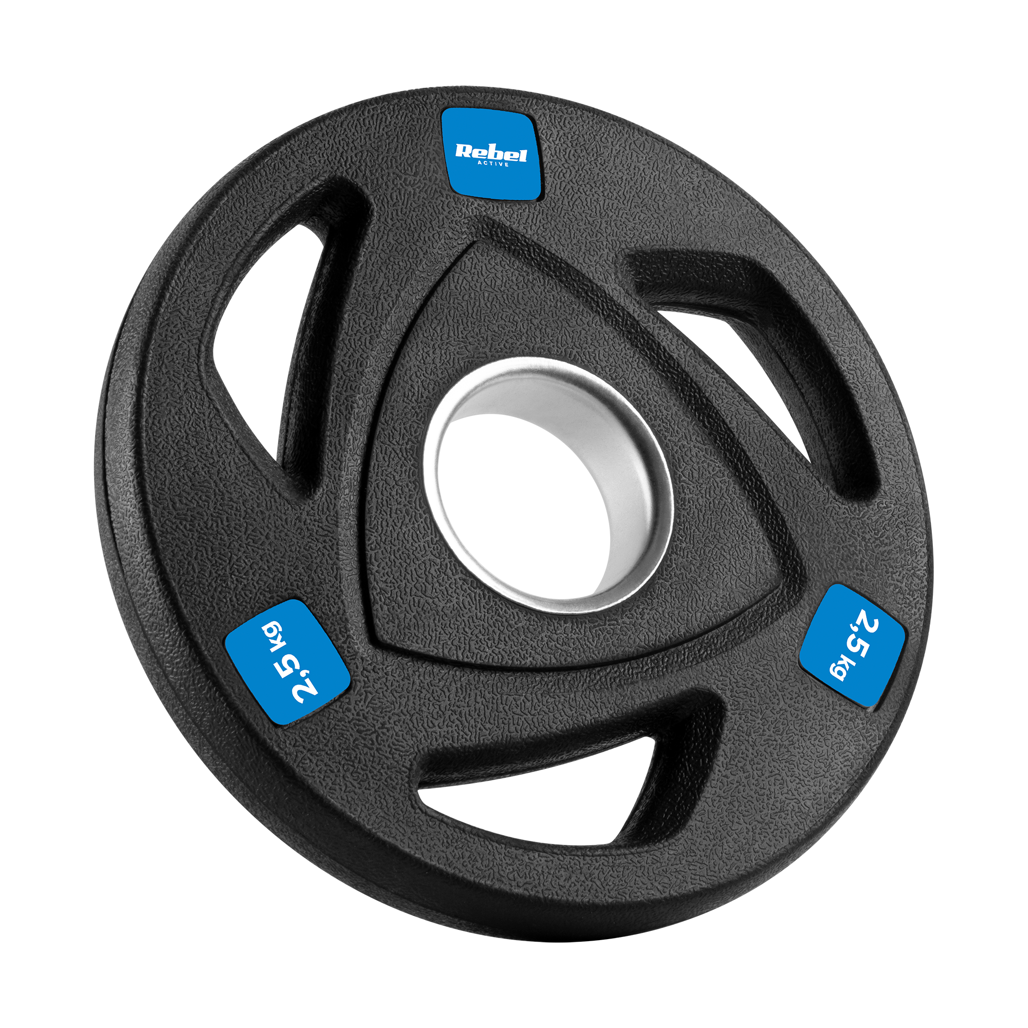 Zestaw Rebel Active pozwala trenować wznosy i przysiady przy pomocy samych ciężarków. Możesz też założyć obciążenia na gryf. Talerze mają większe otwory niż tradycyjne obciążenia, co pozwala na używanie ich z większością sztang olimpijskich. Otwór talerzy w zestawie RBA-2113 dopasowany jest do standardu gryfów olimpijskich i wynosi 51 mm.