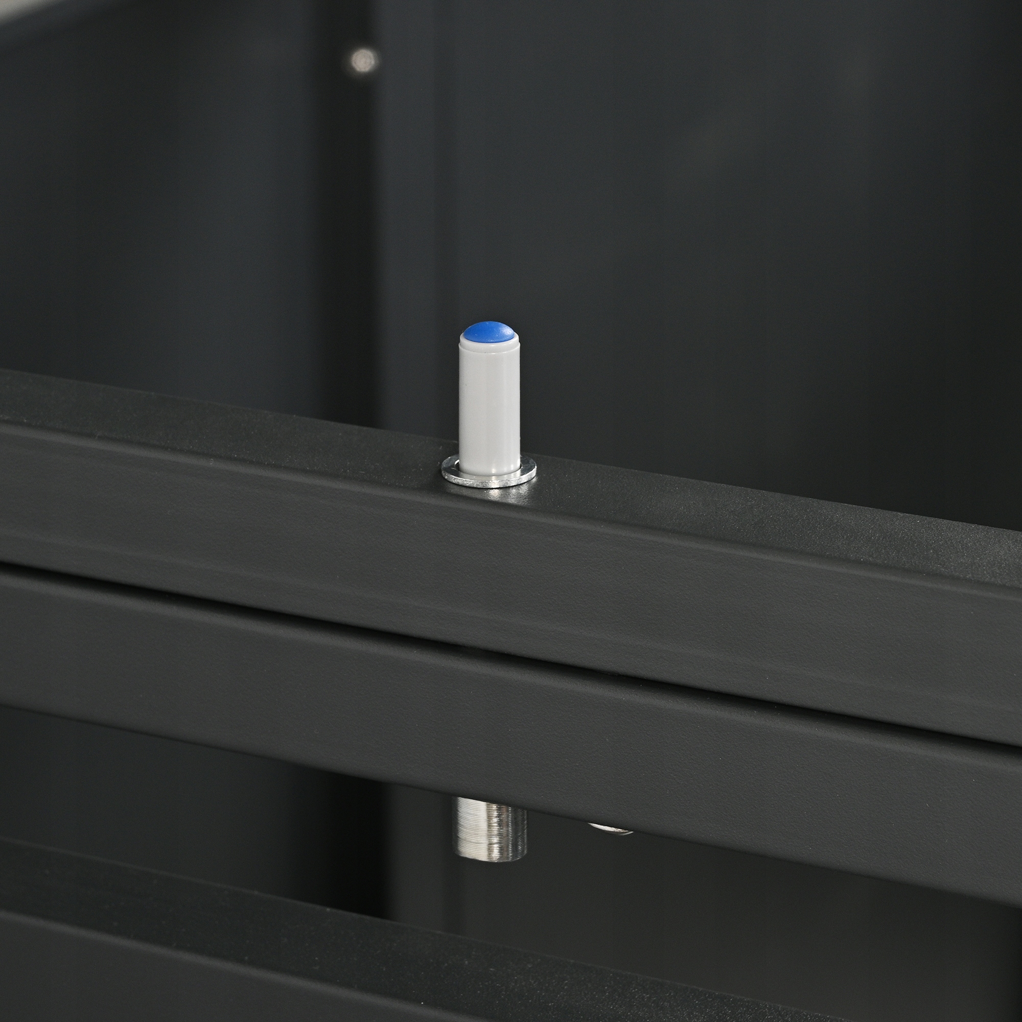 - Zabudowa posiada drzwi frontowe do wjazdu pojemnikiem i podnoszoną do góry klapą z blokadą wysokości.