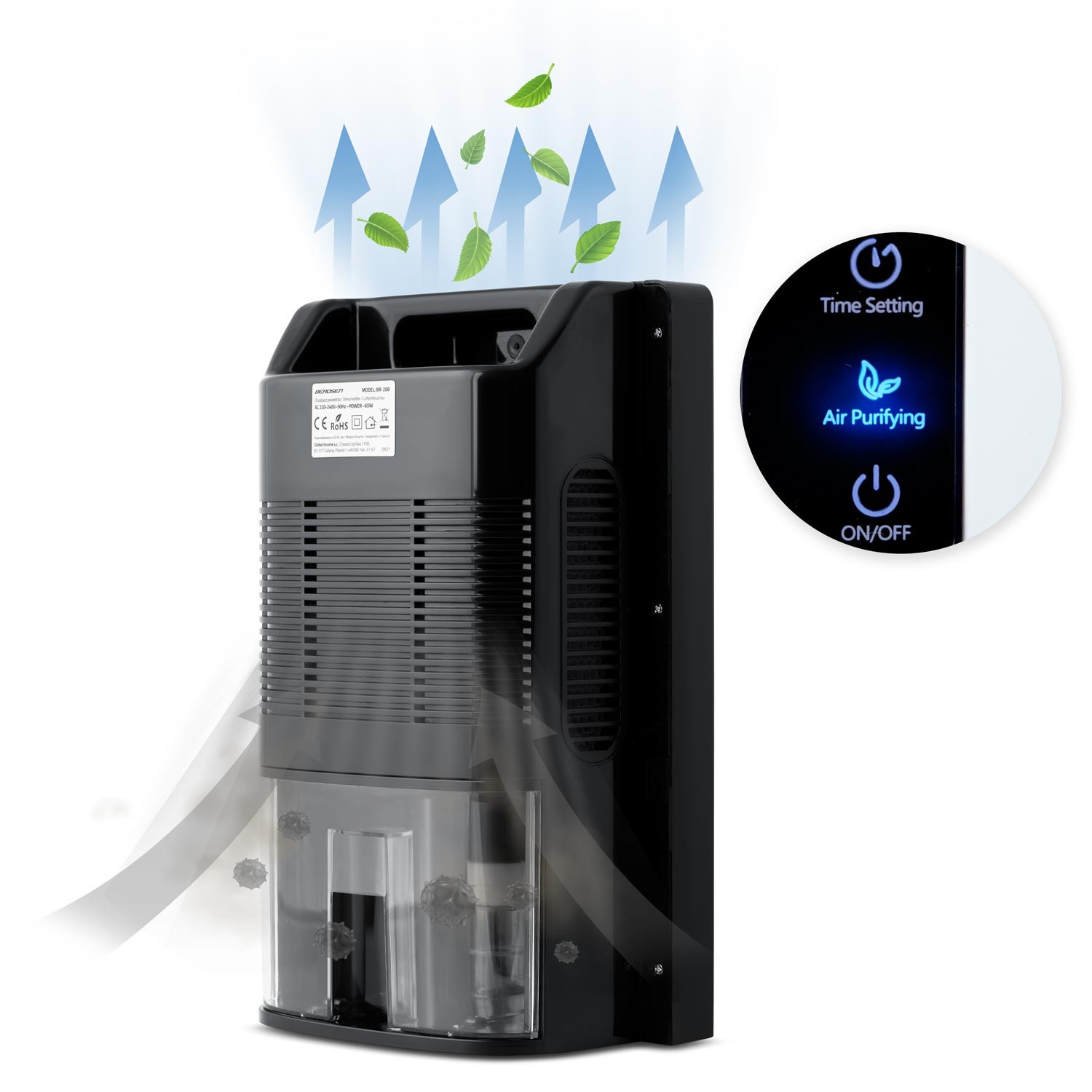 W dodatku pojemność zbiornika na wodę wynosi aż 2 litry, a gdy jest pełny, osuszacz wyłącza się automatycznie, o czym poinformuje Cię zmiana koloru diody LED z zielonego na czerwony.