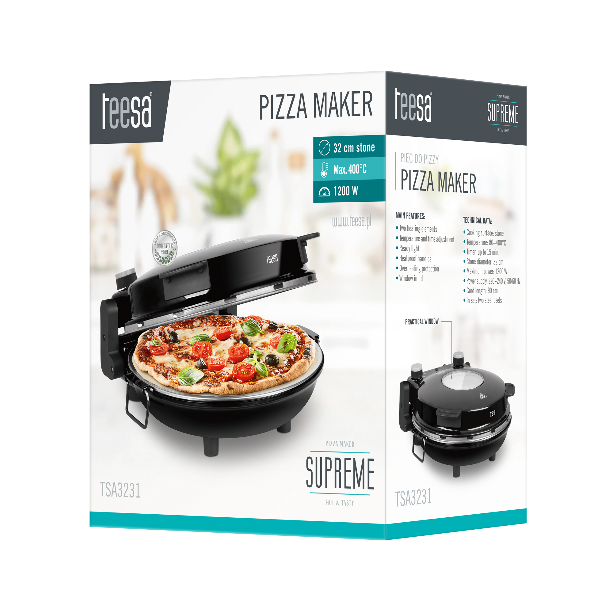 Zastanawiasz się ile czasu zajmuje pieczenie pizzy? Domowy piec do pizzy Teesa, dzięki specjalnej konstrukcji wykorzystującej dwa elementy grzejne, doskonale i równomiernie wypiecze nie tylko ciasto, ale też ser i pozostałe składniki dosłownie w 5 minut. Możesz też wykorzystać go do przygotowania innych, nie tylko włoskich przysmaków!