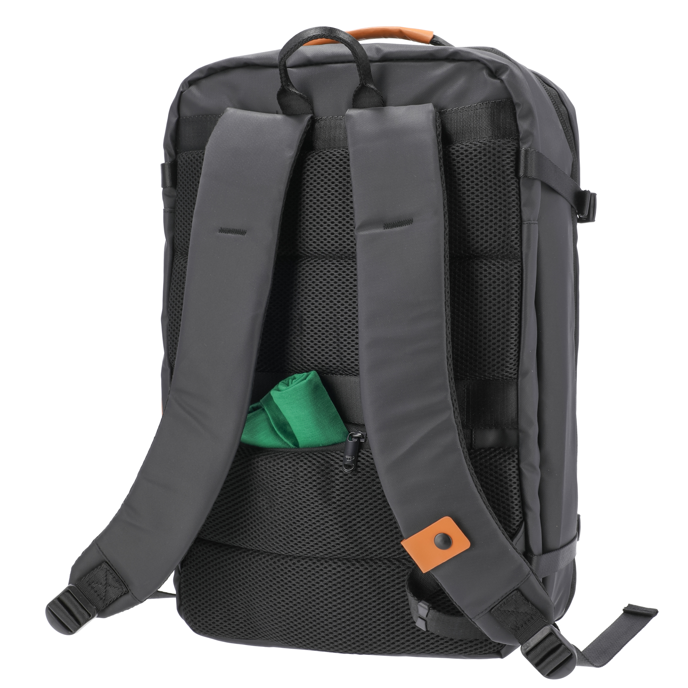 ✅ System pleców, który wykończony jest wentylowaną poduszką co zapewnia przyleganie oraz oddychalność. Dodatkowo wszyty pasek, pozwalający na wsunięcie plecaka i zaczepienie go za rączkę walizki.