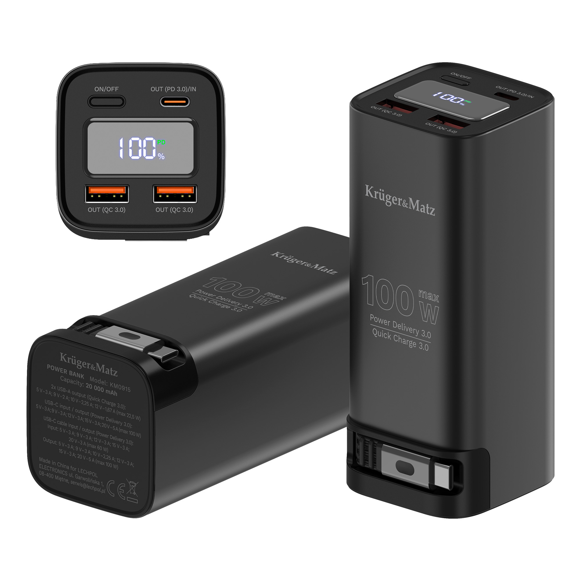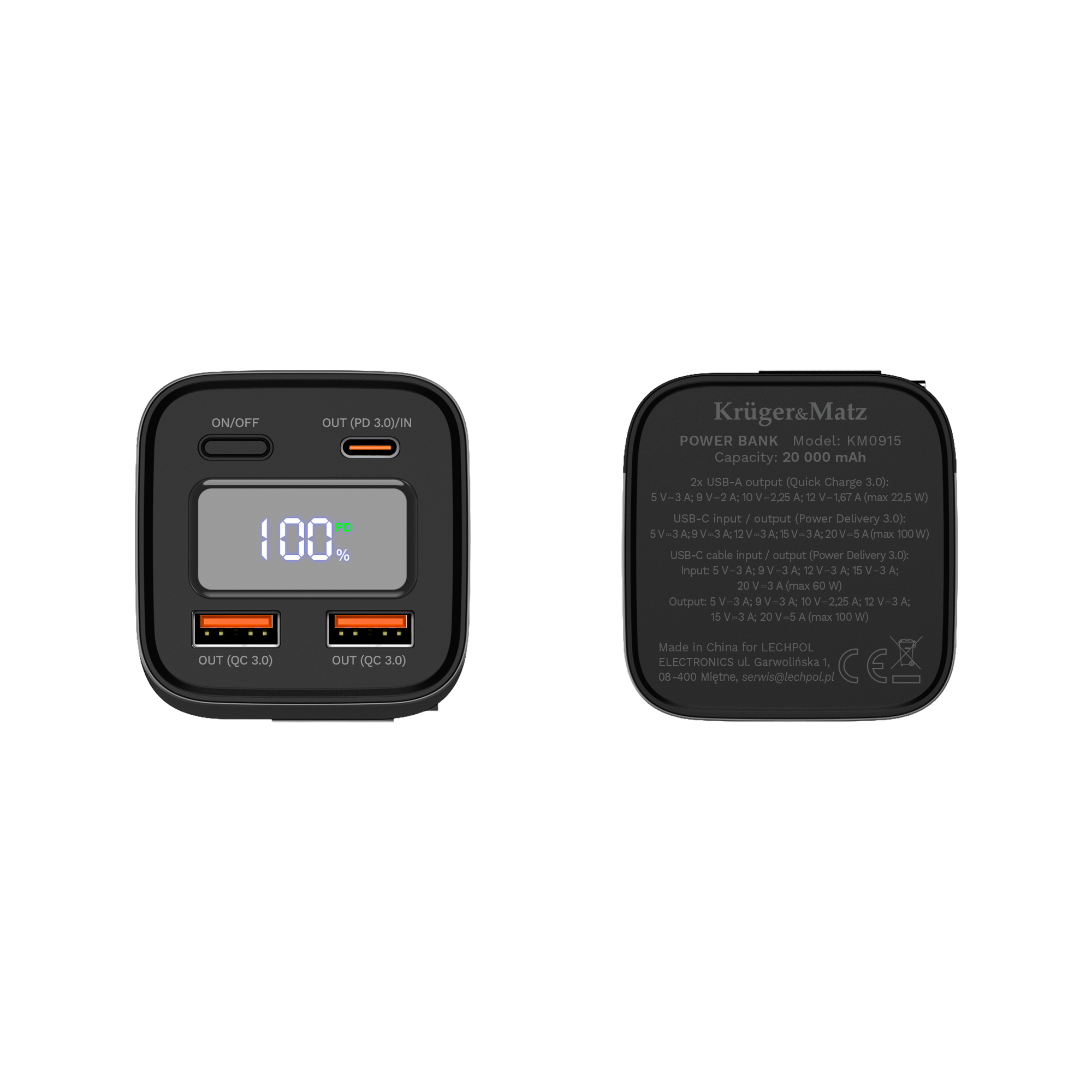 Specification: PowerBank Kruger&Matz 20000 mAh Li-pol 100W z funkcją QC oraz PD