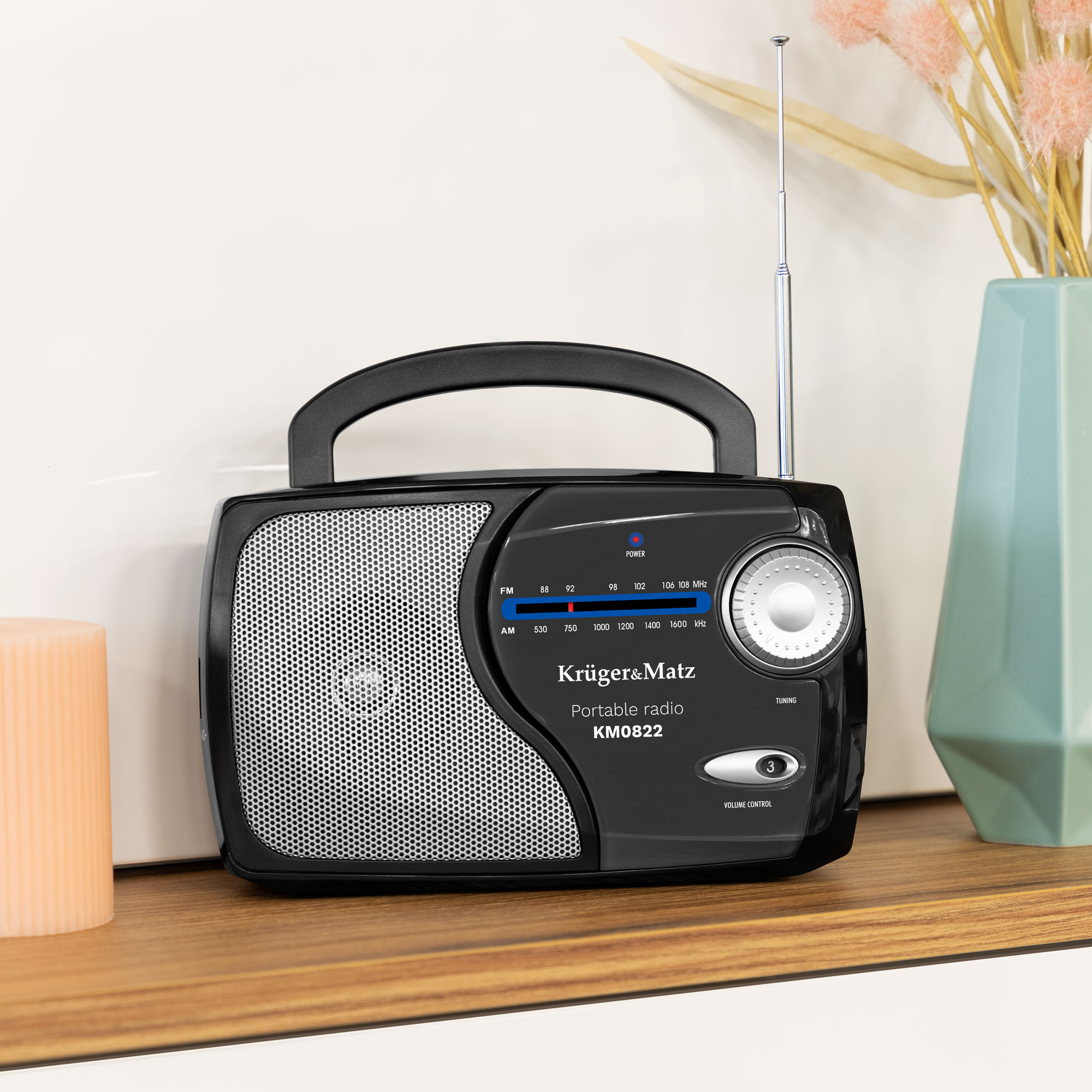 Jak na radioodbiorniki przenośne przystało małe radio KM 822 wyposażone jest w składany uchwyt, który ułatwia przenoszenie urządzenia, a także posiada możliwość zasilania sieciowego, jak też bateriami. Taka funkcjonalność odbiornika FM Kruger&Matz sprawia, że może służyć jako małe radio turystyczne, które bez problemu zabierzesz ze sobą na działkę, do ogrodu, a nawet na camping.