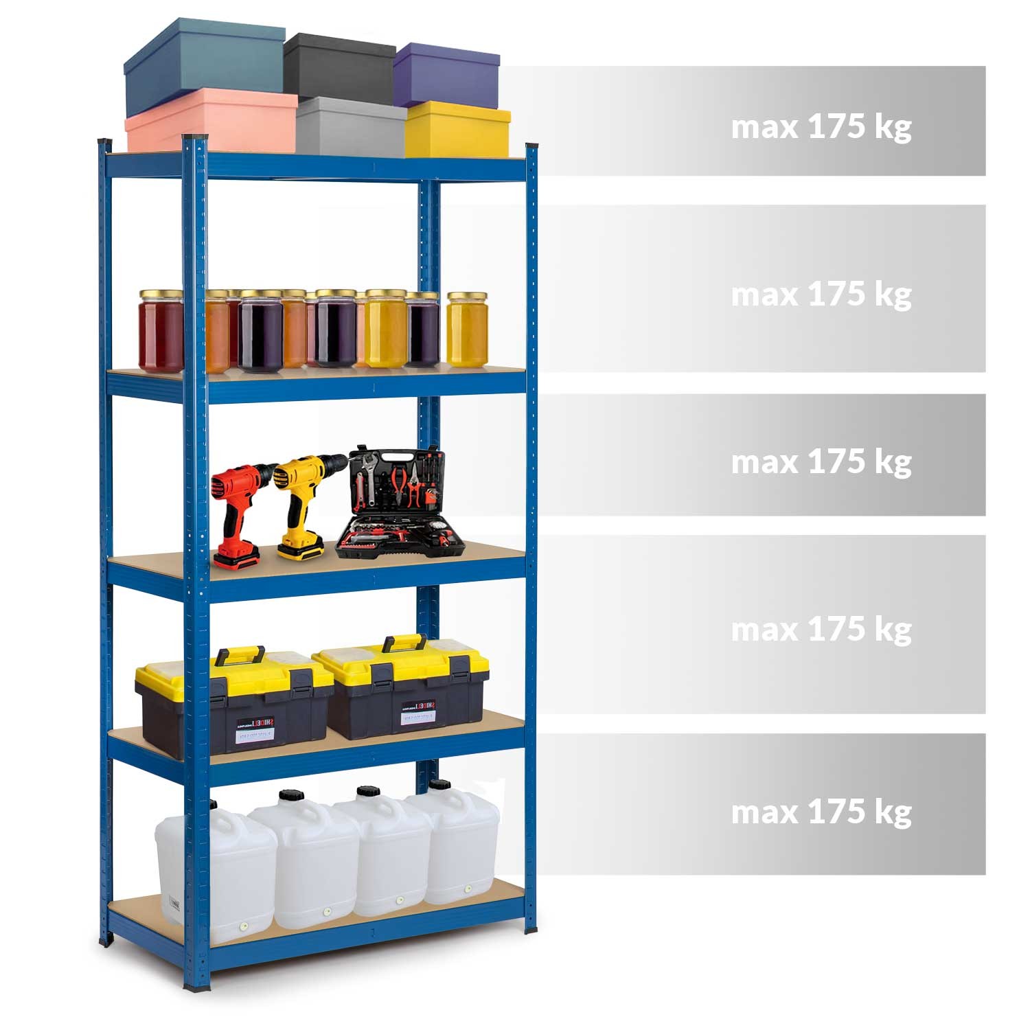 Regał składa się z 5 półek, a jego maksymalne obciążenie to aż 875 kg!