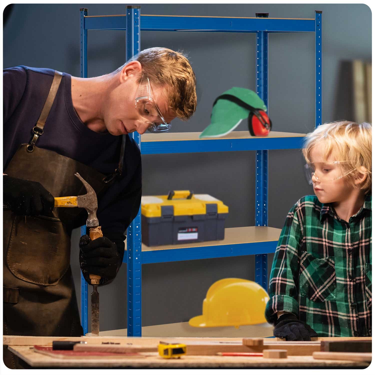 Funkcjonalny i stabilny regał magazynowy w kolorze niebieskim, który znakomicie sprawdzi się w: