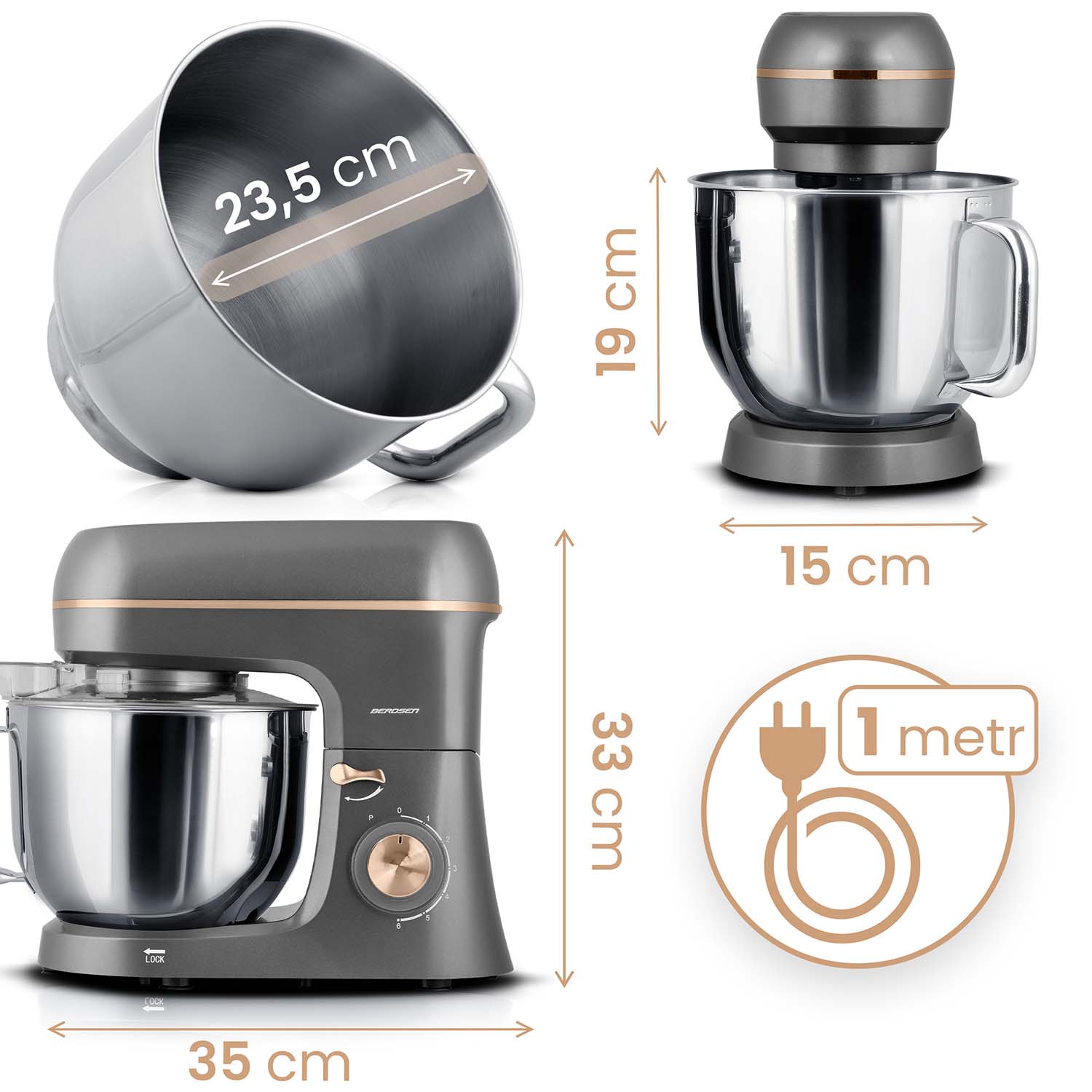Robot planetarny marki Berdsen wyposażony w miedziany silnik z łatwością radzi sobie z najcięższymi ciastami, zapewniając stabilność i niezawodność nawet przy intensywnym użytkowaniu. Dzięki pełnemu metalowemu systemowi przekładni przewyższa modele z plastikowymi zębatkami trwałością i odpornością na zużycie, co czyni go inwestycją na lata.