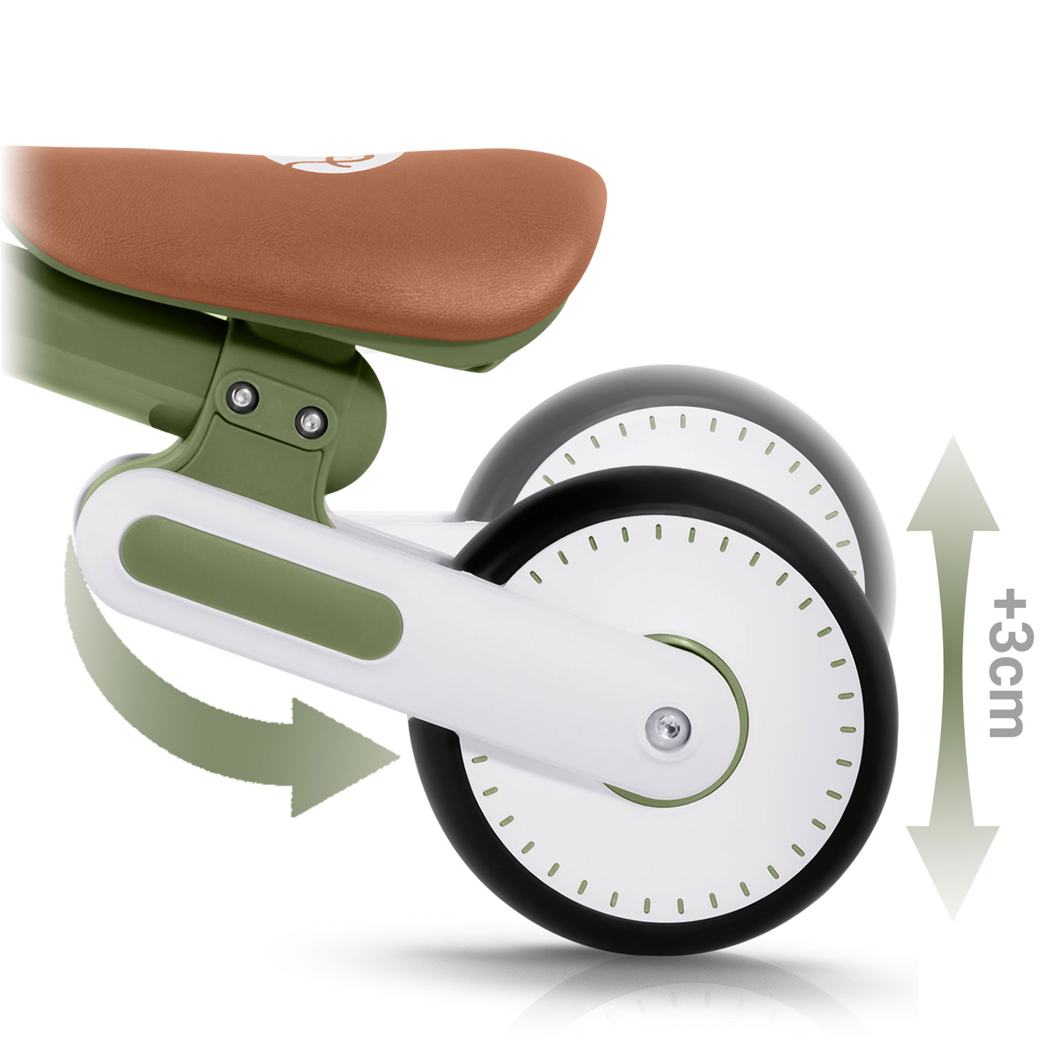 - Wydłużony czas użytkowania: dziecko może korzystać z rowerka dłużej, ponieważ siedzisko można podnosić wraz ze wzrostem malucha.