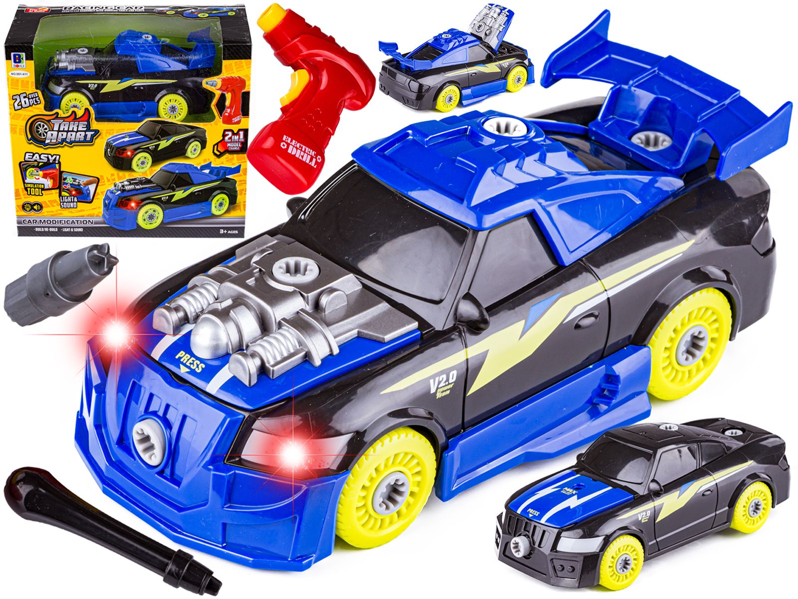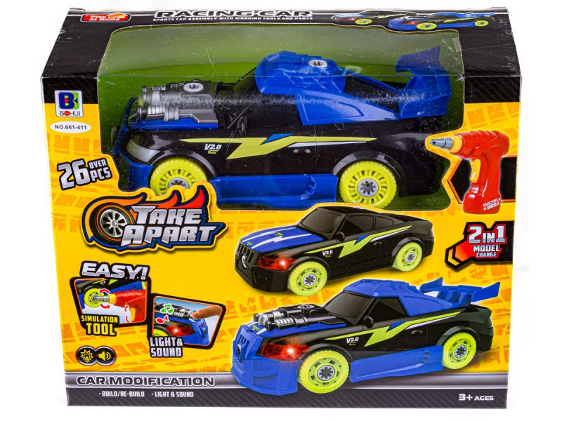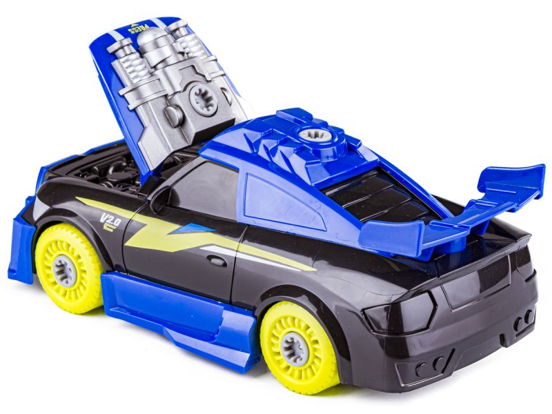 Poszczególne elementy samochodu można rozkręcać i skręcać bez końca a realistyczne dźwięki i efekty świetlne z pewnością uatrakcyjnią zabawę.