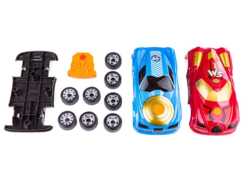 Karoserię samochodu można wymieniać a realistyczne dźwięki i efekty świetlne z pewnością uatrakcyjnią zabawę. Każda z karoserii auta posiada przycisk na masce. Po zamontowaniu karoserii na podwoziu i naciśnięciu przycisku usłyszymy dźwięk odpalanego i odjeżdżającego samochodu.