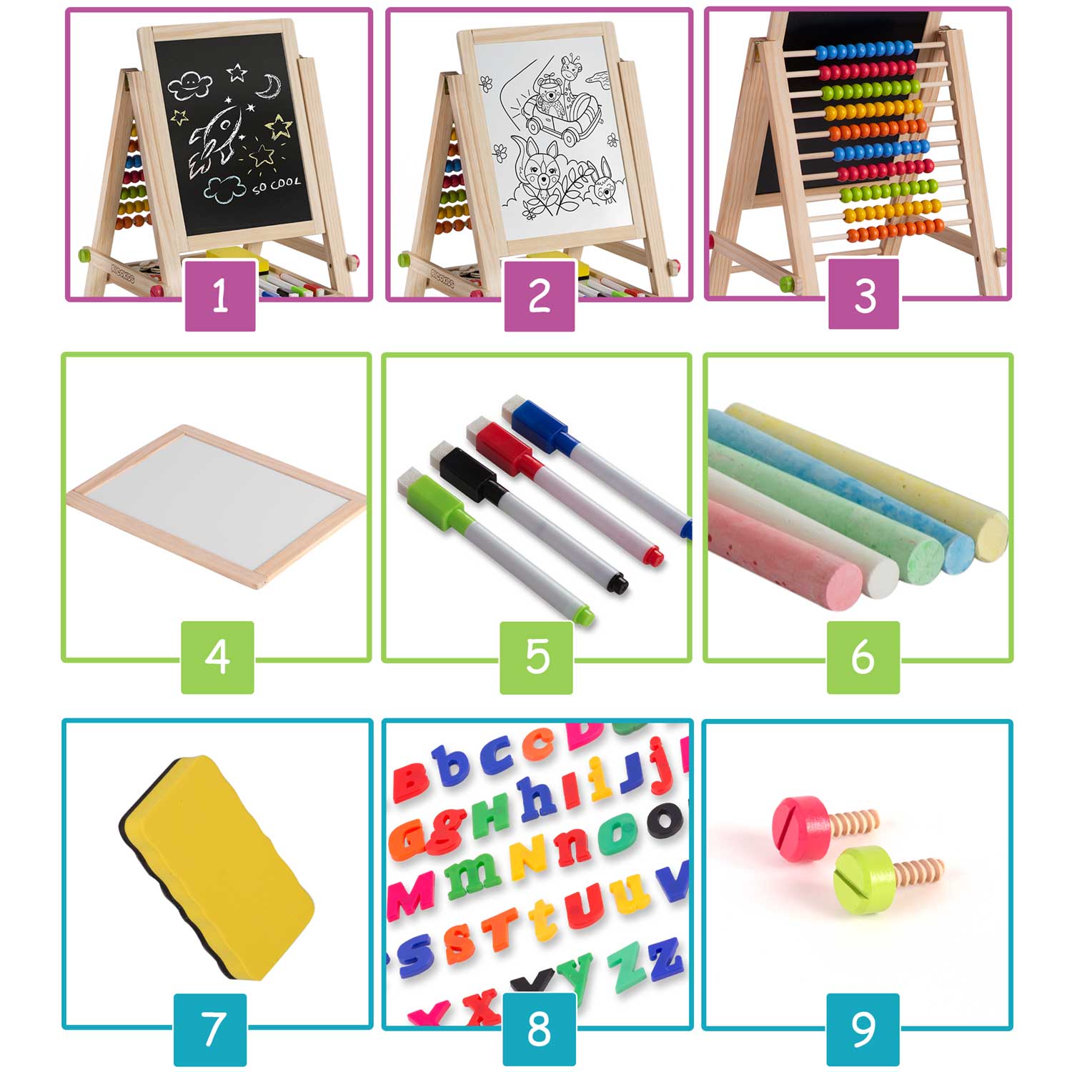 Specification: Składana magnetyczna kredowa tablica Ricokids