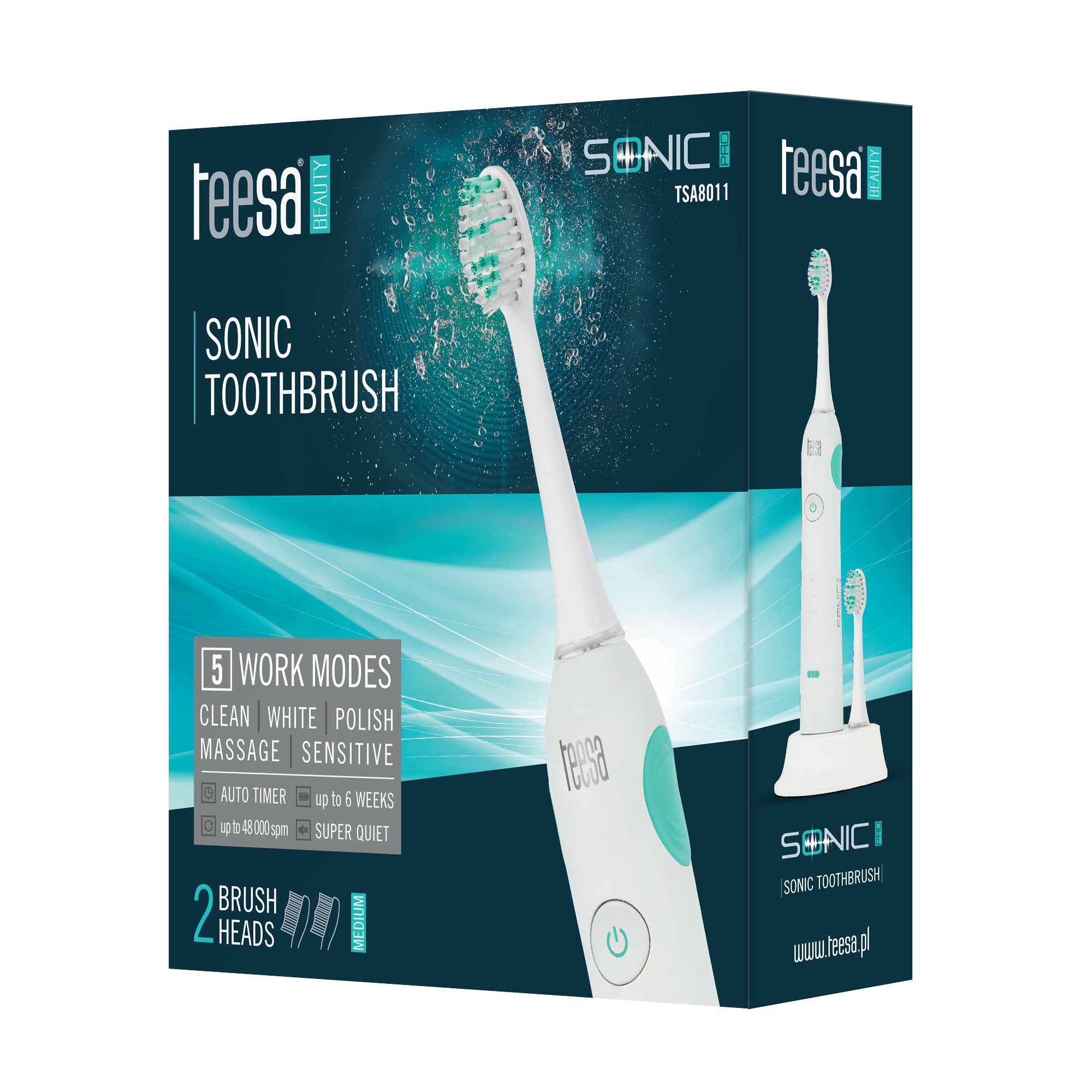 Teesa Sonic PRO została stworzona, by kompleksowo dbać o Twoje zęby. Urządzenie wyposażone zostało w pięć trybów pracy obejmujących funkcje czyszczenia, wybielania, polerowania, masażu oraz delikatnego mycia wrażliwych zębów.