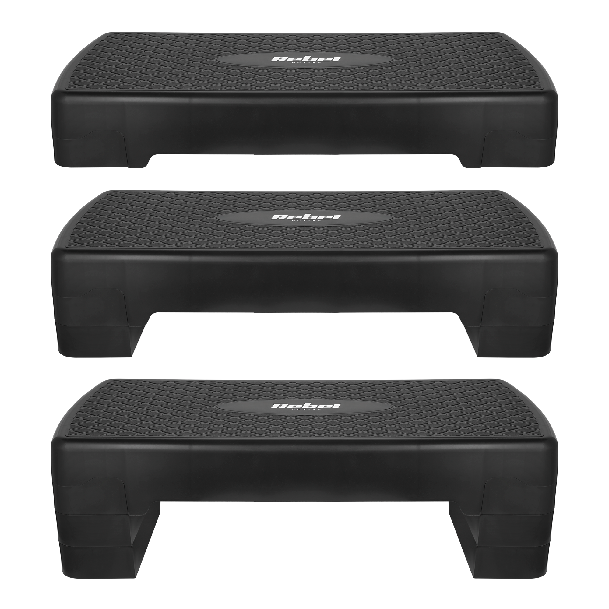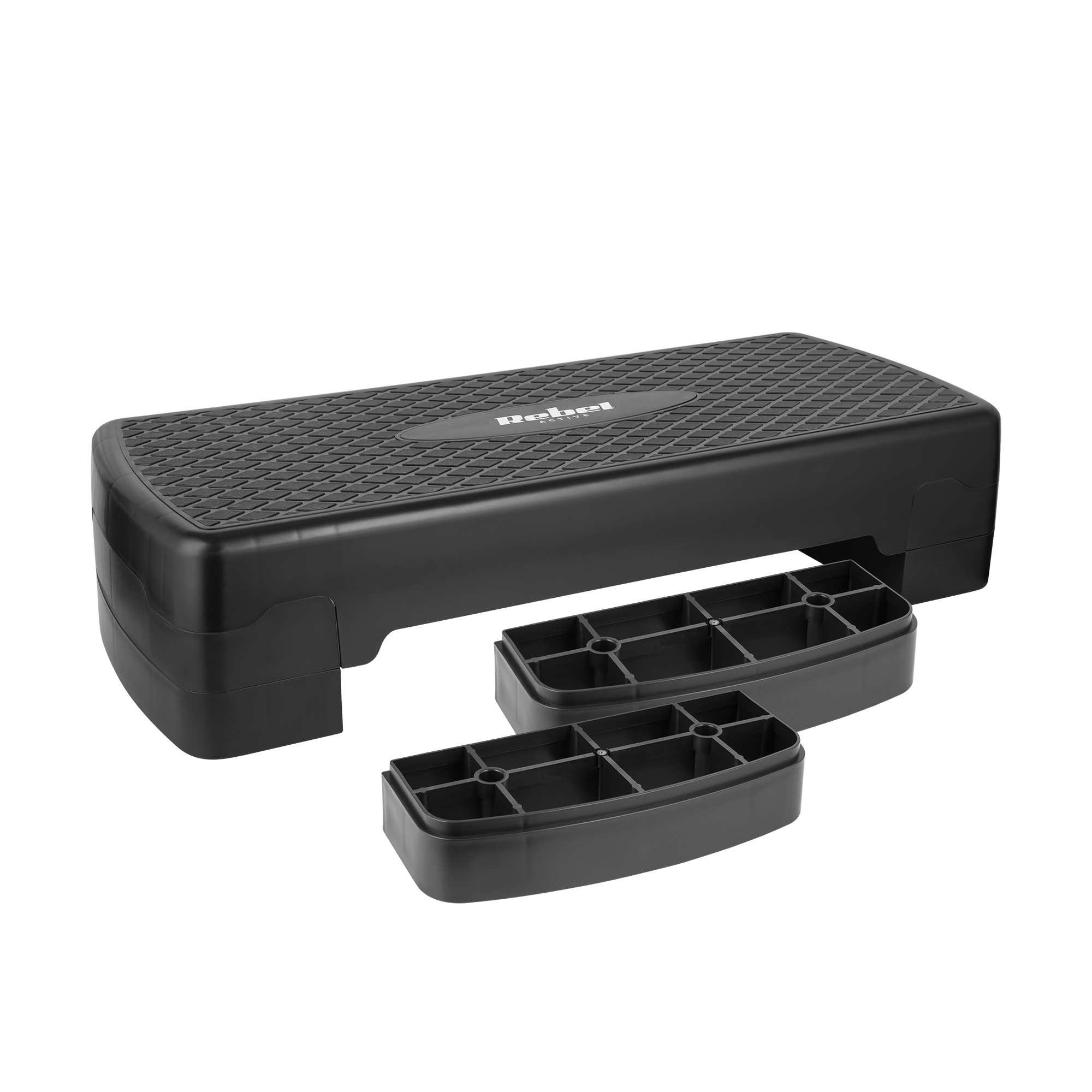 Step fitness Rebel Active to idealne narzędzie do intensywnych treningów cardio, wzmacniających i formujących ciało. Jego trzystopniowa regulacja wysokości, umożliwia dostosowanie intensywności treningu do swoich indywidualnych potrzeb oraz poziomu sprawności.