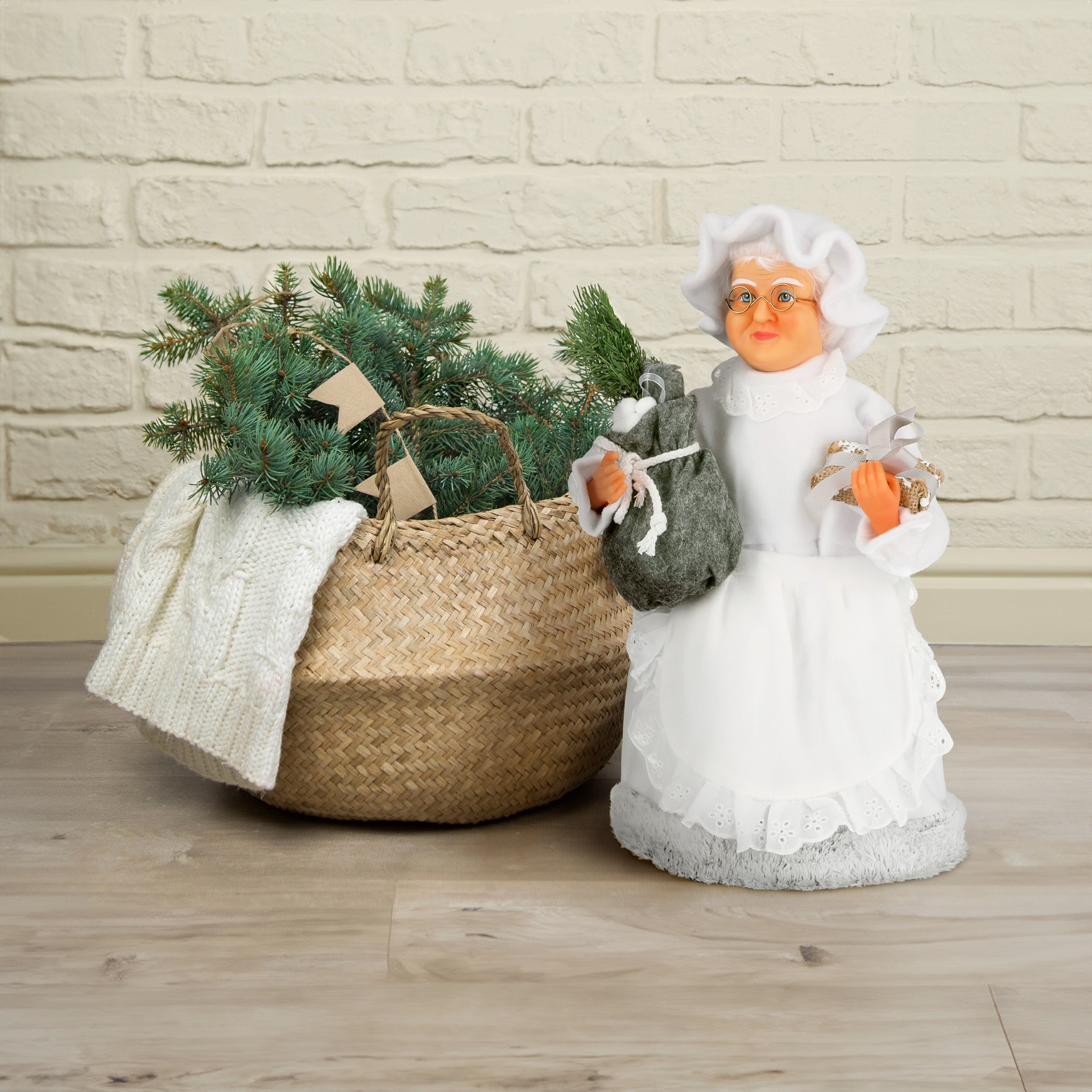 ❄️ Jej starannie wykonana figurka wnosi ciepło, radość i nutkę magii do każdego wnętrza. Na głowie nosi miękką, wełnianą chustę, która dodaje jej jeszcze więcej uroku. W dłoniach trzyma worek pełen dobroci i niespodzianek.