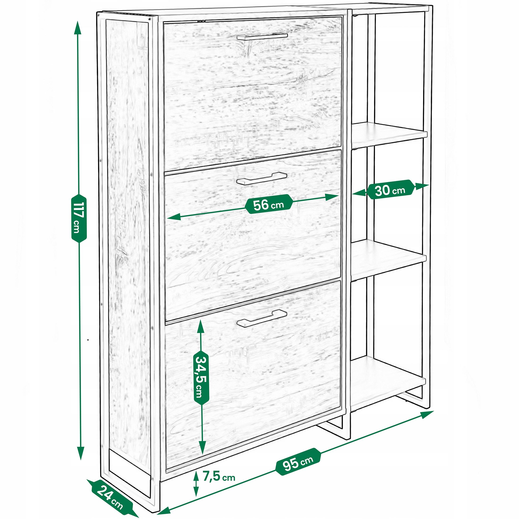 Specification: SZAFKA na buty regał 3 KOMORY OBUWIE komoda pojemna do przedpokoju LOFT