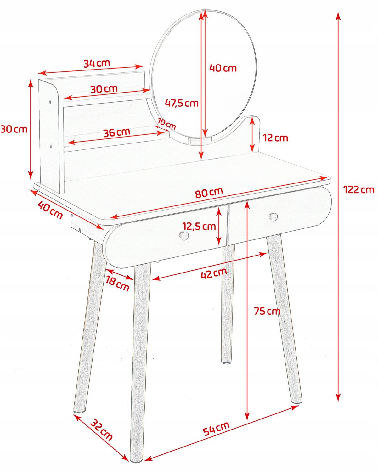 Specification: Toaletka z lustrem SCANDI kosmetyczna skandynawska