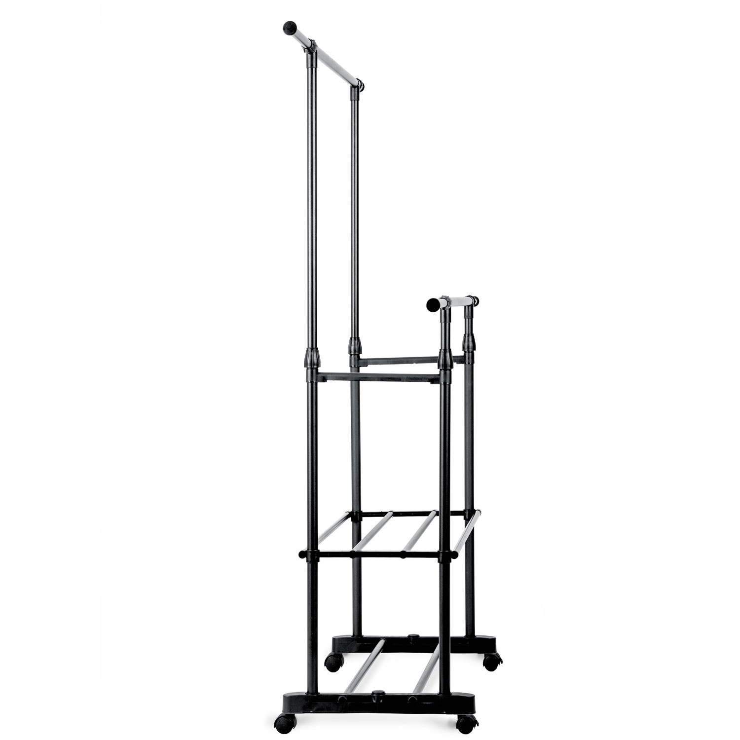 Prezentowany wieszak ma dwa uchwyty np. na krawaty itp. praktyczny dla studentów, podczas remontu, sprawdzi się w domowej garderobie, jak też na płaszcze dla gości. Idealne dla rodziny posiadającej dzieci, dzięki swojej regulowanej  ergonomicznej wysokości.