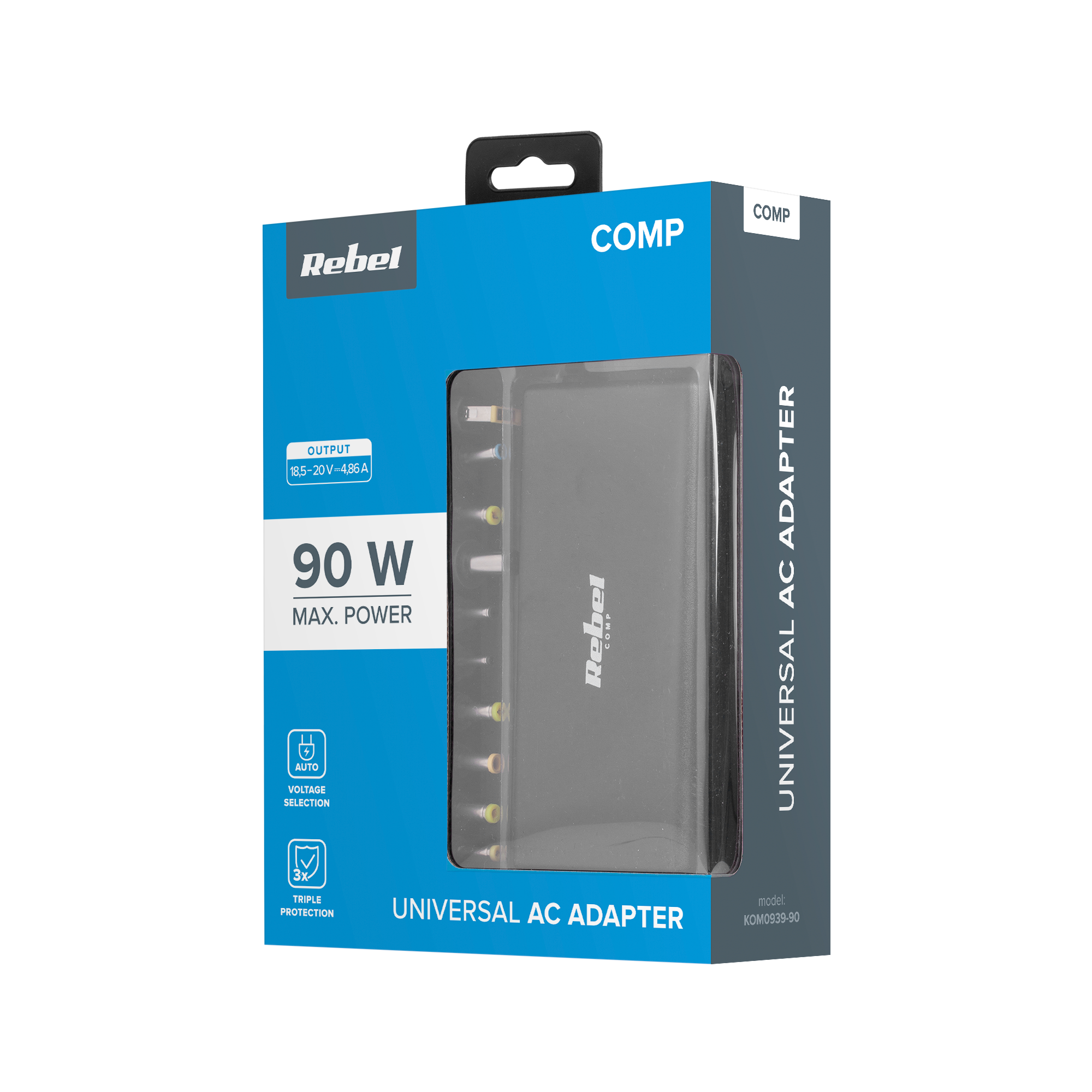 Specification: Zasilacz ładowarka do laptopa uniwersalna Rebel 90 W Dell Asus HP Lenovo