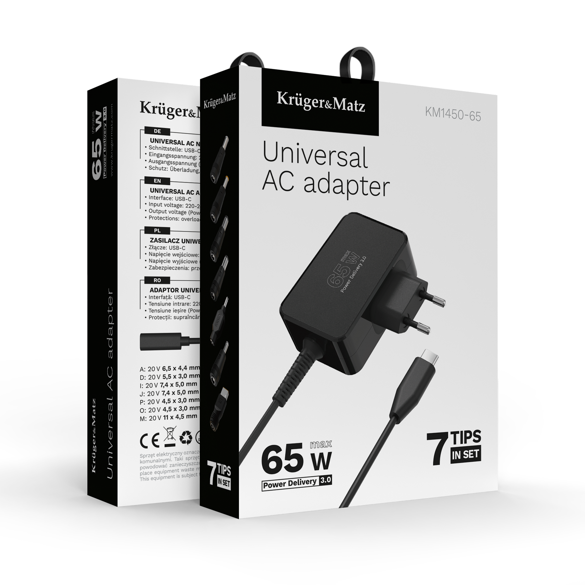 Specification: Zasilacz uniwersalny Kruger&Matz 65W z funkcją Power Delivery 7 końcówek