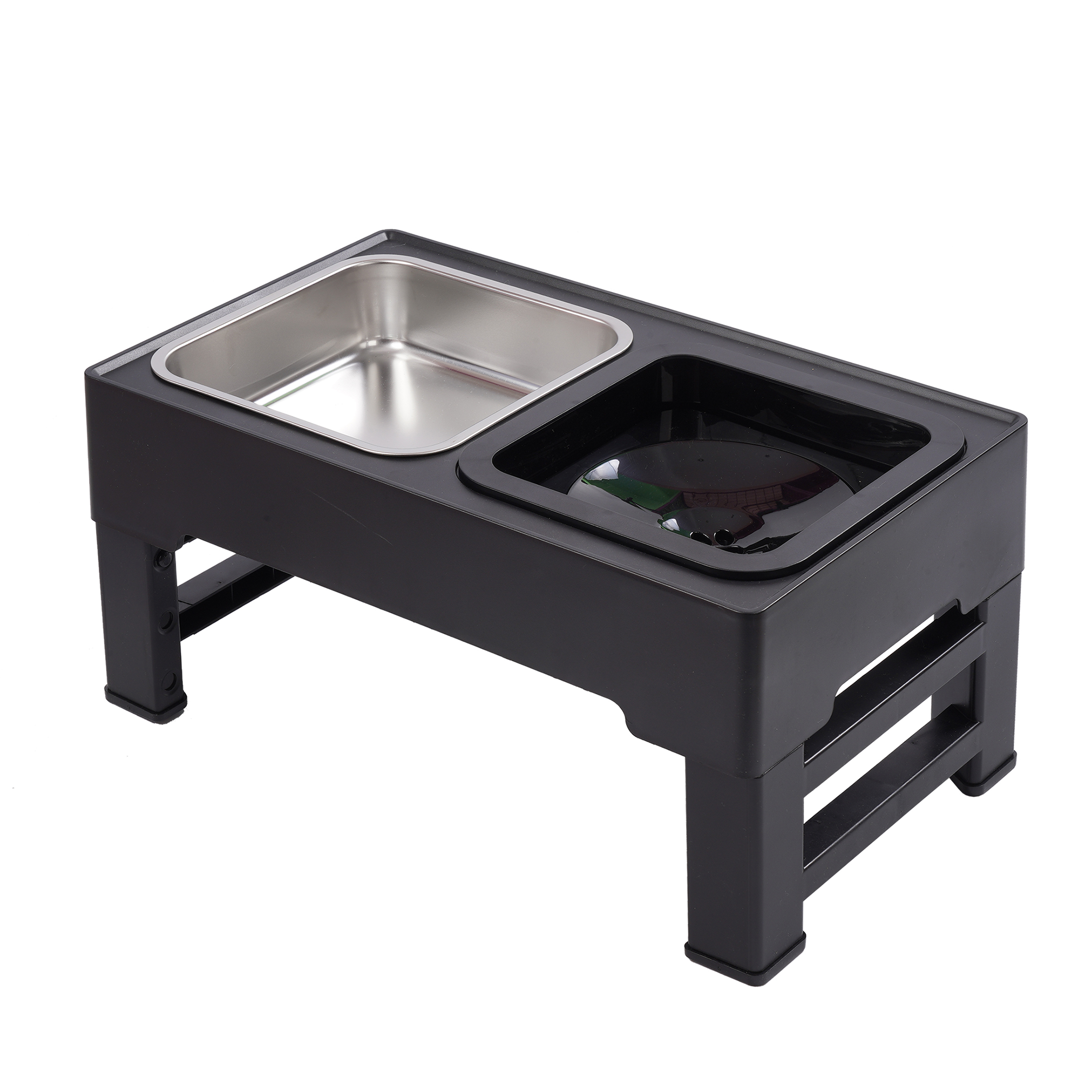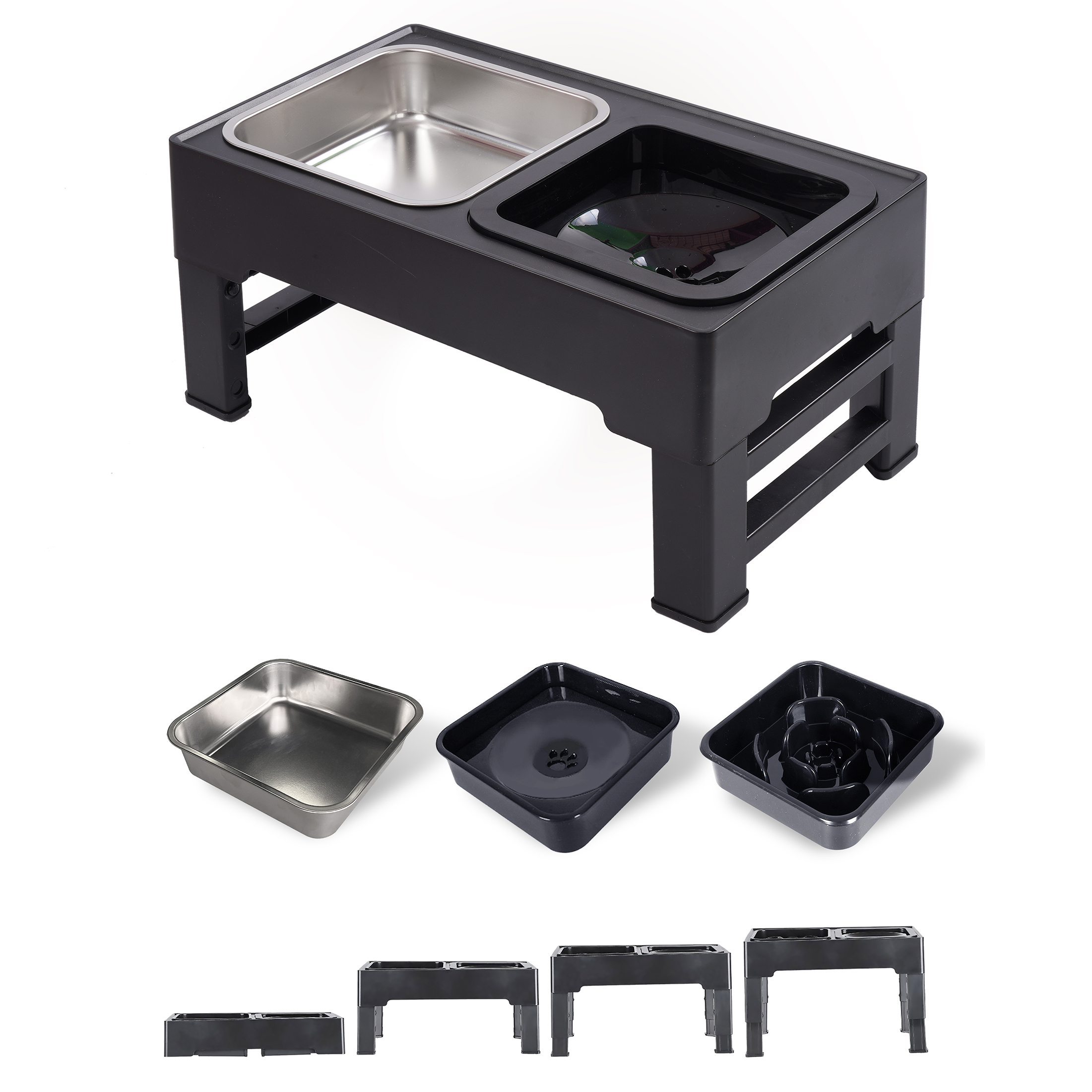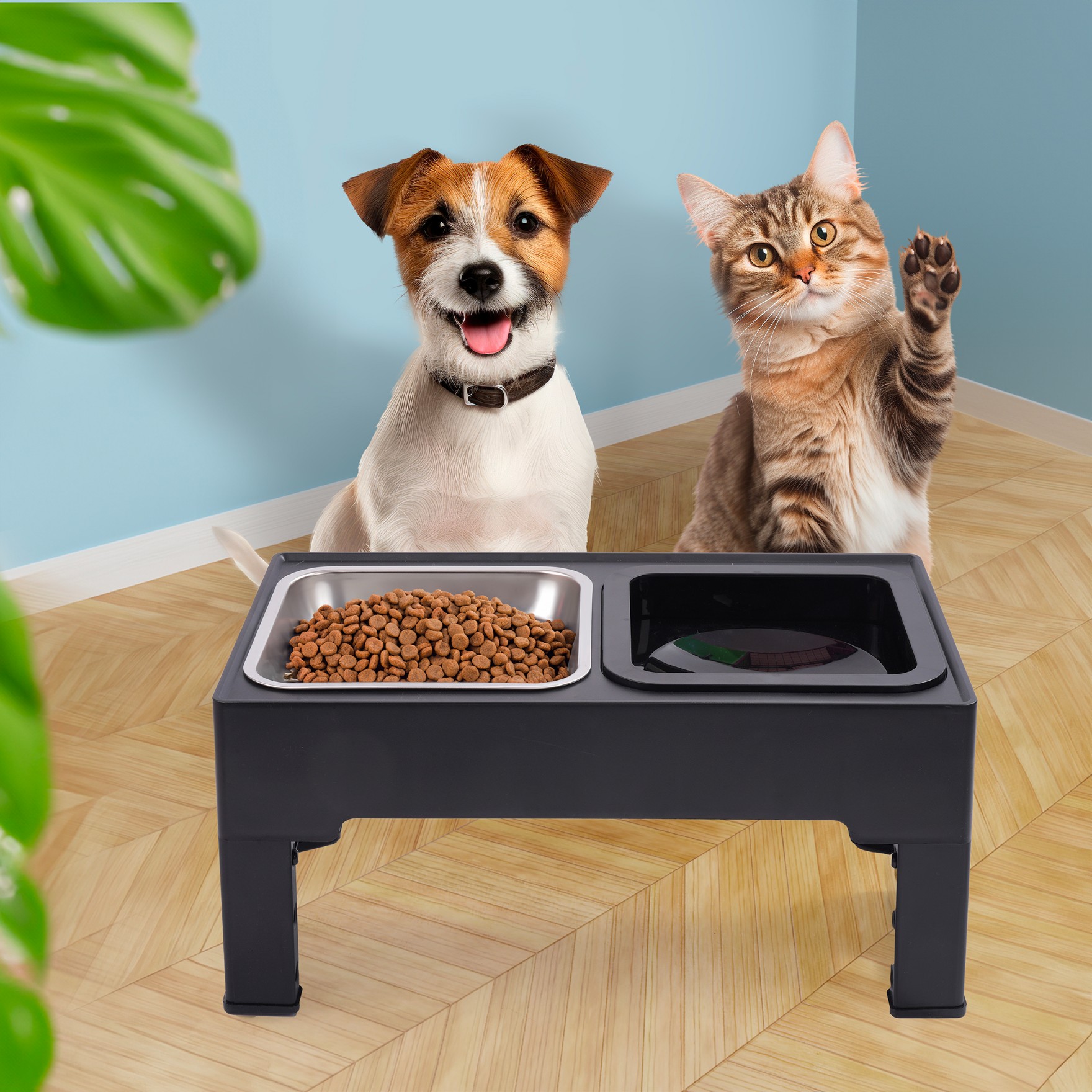 ➡️ Możliwości regulacji wysokości pozwala na dostosowanie zestawu do rozmiaru zwierzaka, dbając przy tym o jego posturę i stopując nadmierne zginanie karku. Miski są wyjmowane, więc łatwo jest zadbać o ich czystość.