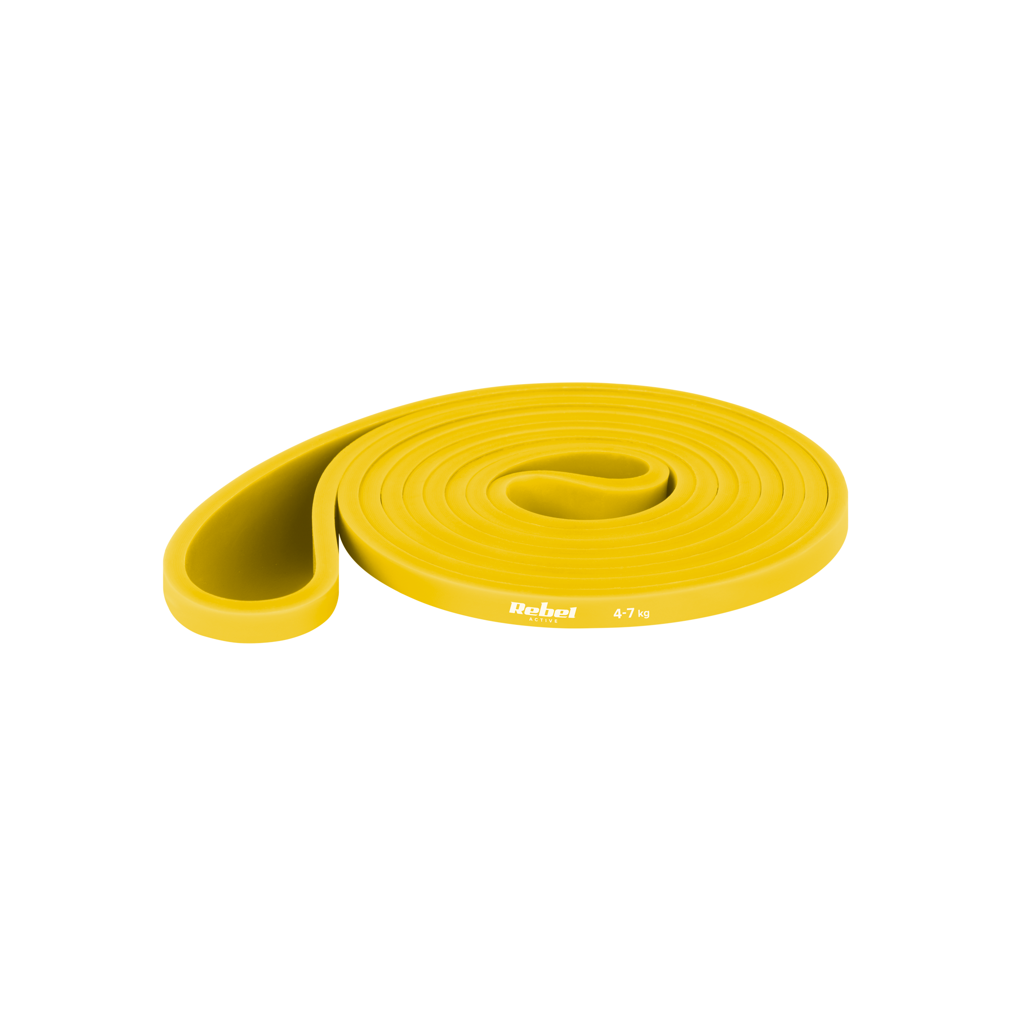 Żółta guma o oporze od 4 do 7 kg jest idealna do ćwiczeń rehabilitacyjnych oraz przeznaczona dla osób początkujących. Doskonała do lekkiego treningu siłowego i rozciągania.