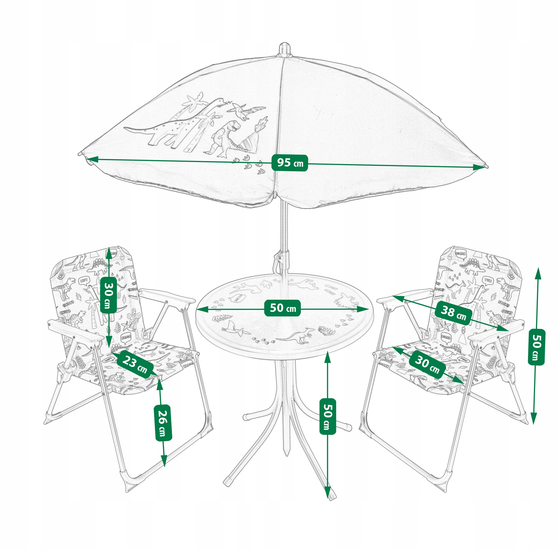 Specification: Zestaw MEBLI OGRODOWYCH dla dzieci piknikowy parasol stolik krzesła