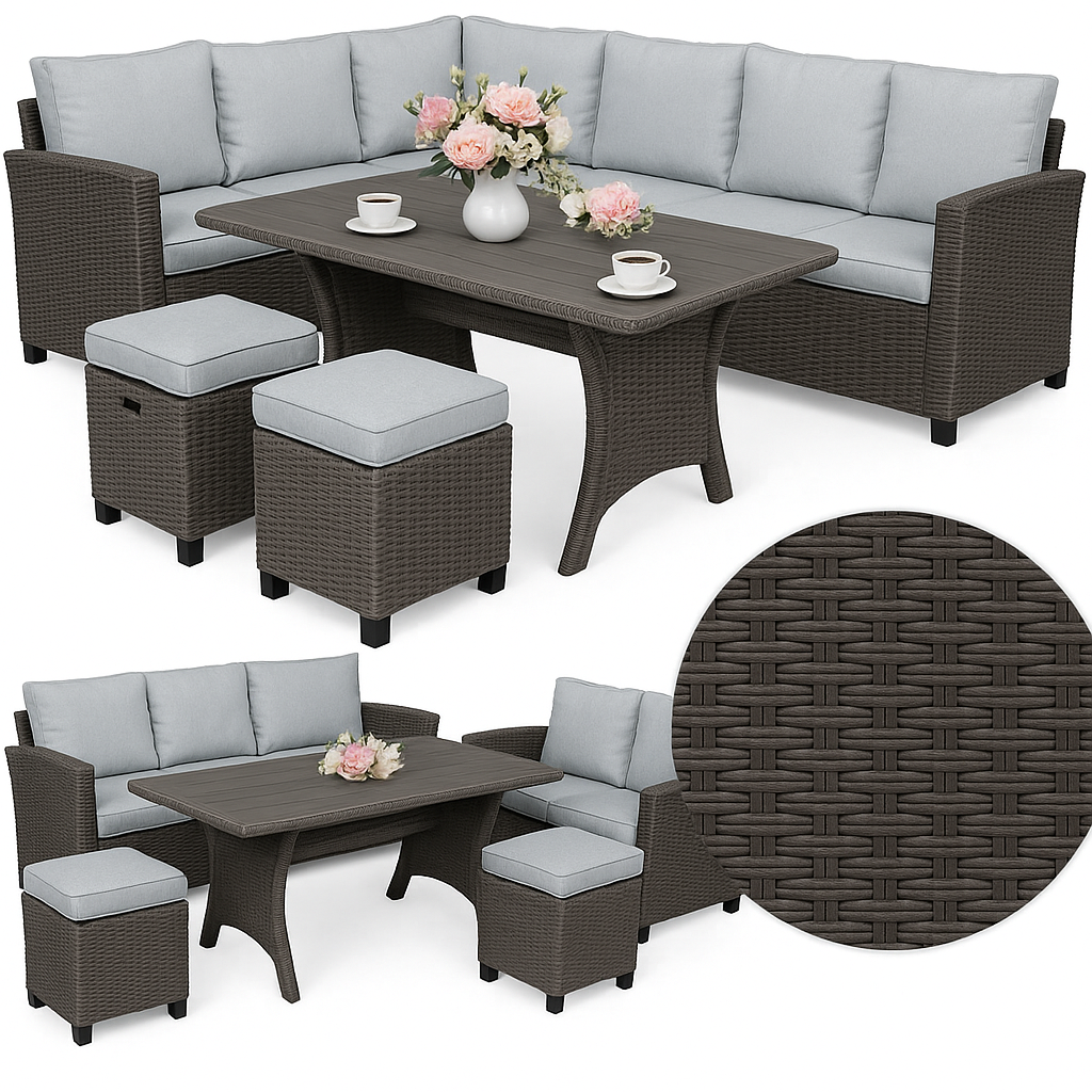 Specification: Zestaw ogrodowy wypoczynkowy narożnik stół pufy meble ogrodowe technorattan VENEZIA