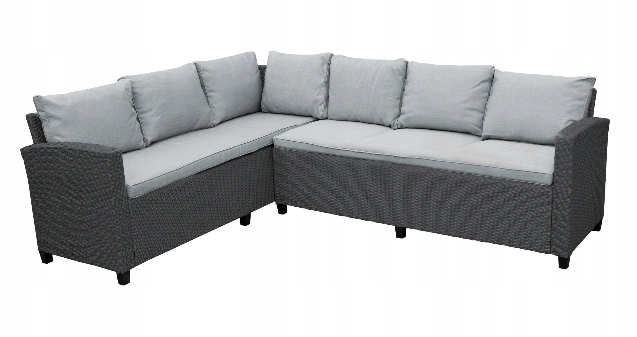 ➡️ Jego mocne, stalowe elementy są niezwykle trwałe. Nogi mebli wykonane są z tworzywa imitującego drewno, a narożnik jest modułowy i lekki, można go więc swobodnie przestawiać i dopasować do dowolnego otoczenia. Grube poduszki i stabilne pufy gwarantują wygodę użytkowania.