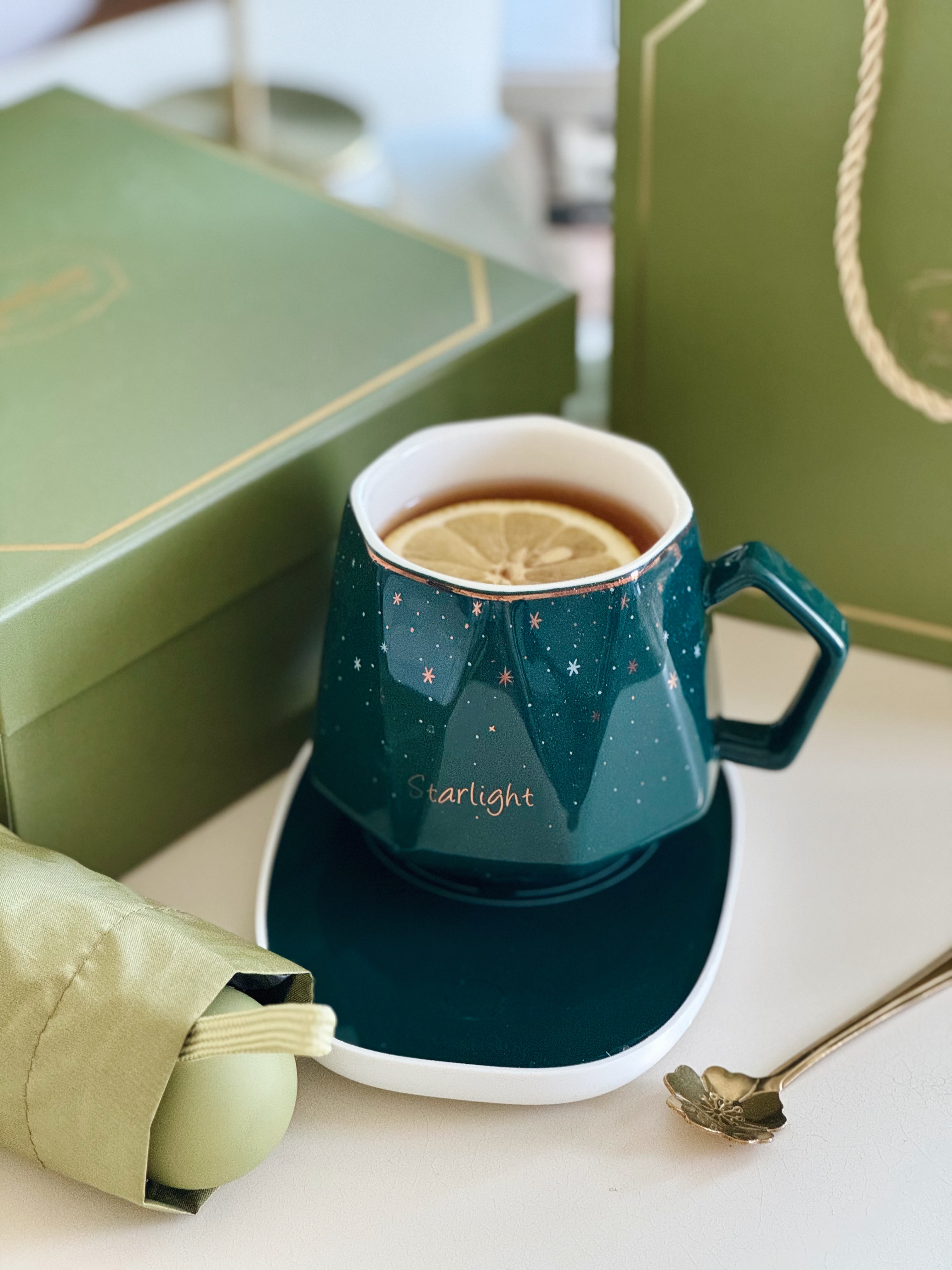 ☘️ Zestaw zawiera: ceramiczny kubek, łyżeczkę, parasolkę, podgrzewacz do kubka.