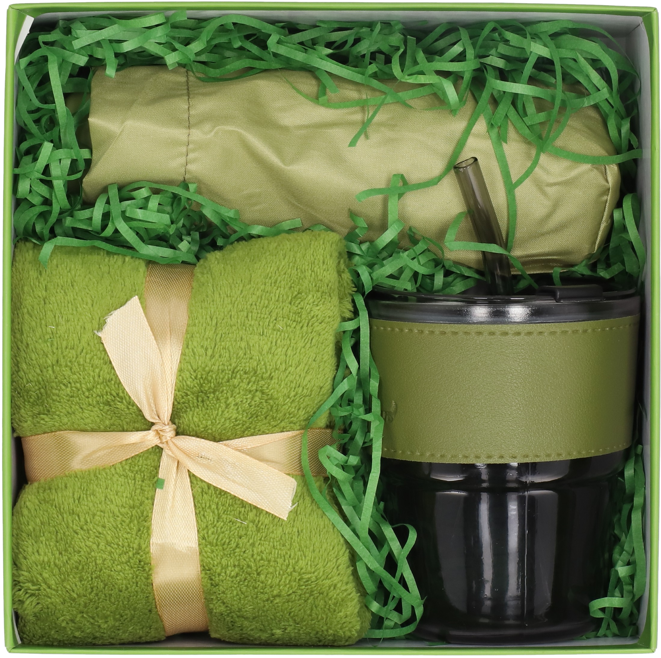 Specification: Zestaw prezentowy KUBEK turystyczny SZKLANY parasolka ręcznik UPOMINKOWY