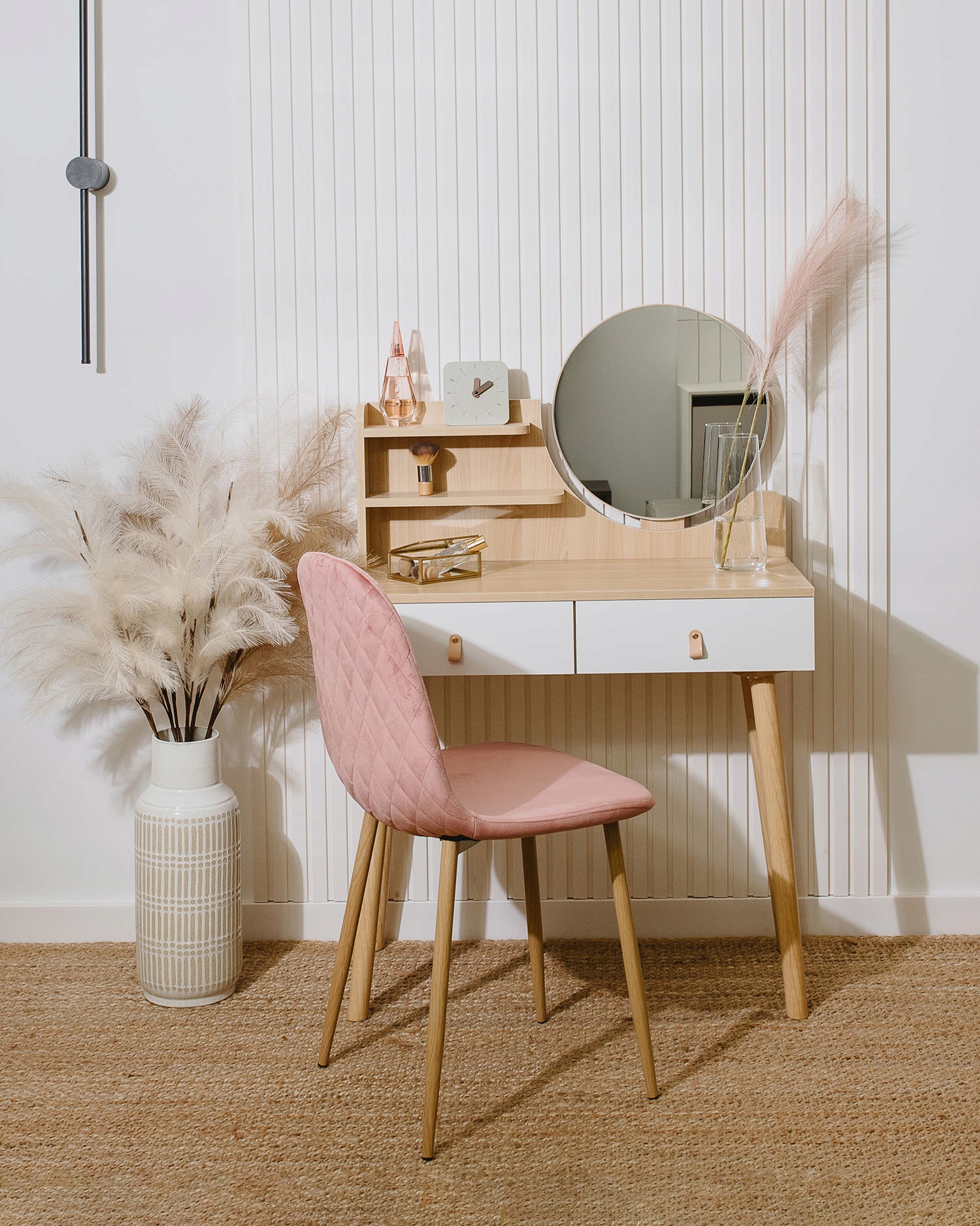 Mebel doskonale pasuje do sypialni jako praktyczne miejsce do wykonania makijażu, fryzury, codziennych pielęgnacyjnych czynności kosmetycznych, a także do napisania listu czy też przechowywania wielu rozmaitych drobiazgów.
